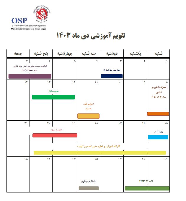 تقویم آموزشی دی ماه 1403 آکادمی OSP منتشر شد